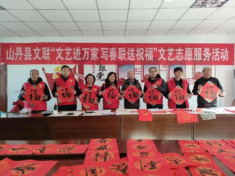 寒冬腊月,笔墨飘香。在2024龙年春节即将到来之际,山丹县文联组织书画文艺志愿者走进全县8个乡镇集中开展“写春联送祝福”活动。