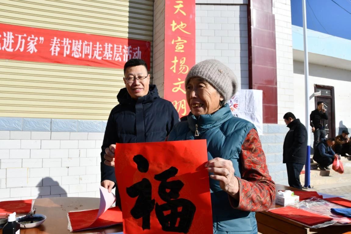 活动现场,省文联文艺志愿服务团省书法家协会小分队的志愿者们,践行“奉献、友爱、互助、进步”的志愿精神,以实际行动助力新时代文明实践和基层精神文明建设,不畏严寒,不辞辛苦,共为群众书写春联、“福”字500余幅,受到群众的热烈欢迎和一致好评。大红的春联,喜庆的“福”字,为即将到来的新春佳节增添浓浓年味,让广大基层群众近距离接触传统书法艺术,并送去了党和政府的亲切关怀和新春祝福。