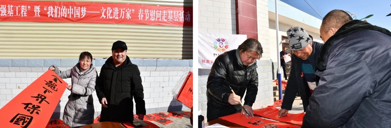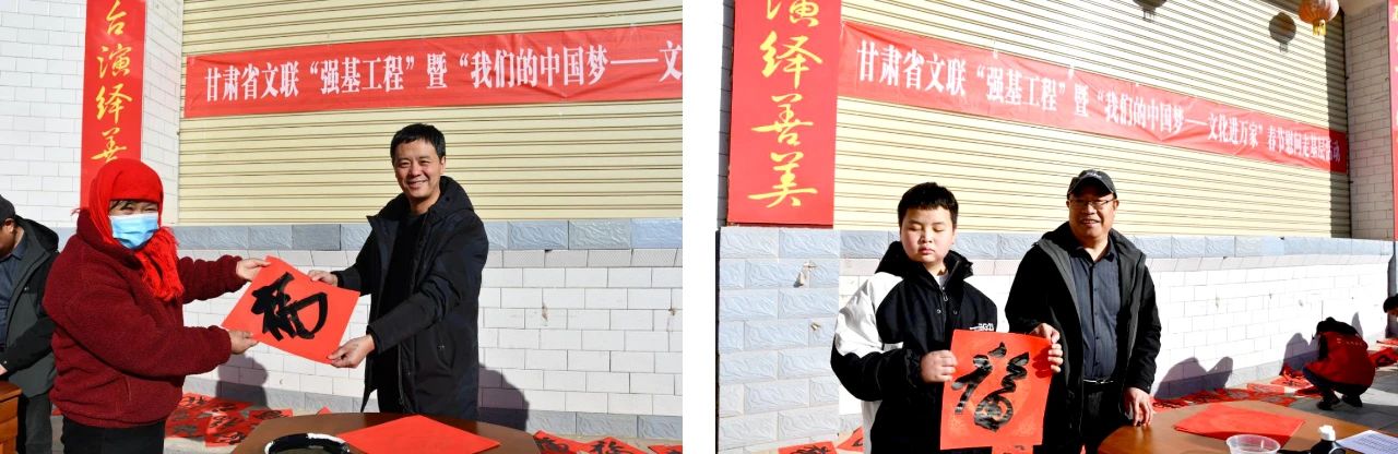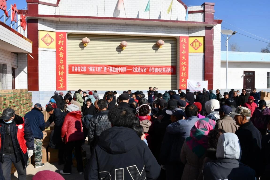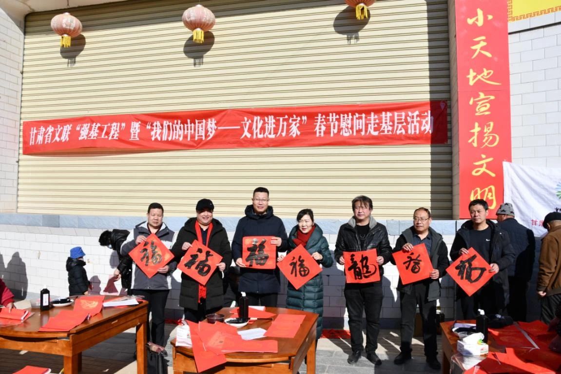 1月12日,为深入贯彻落实中国文联、中央文明办《“强基工程”——文艺助力基层精神文明建设行动(2023-2025年)实施方案》精神,甘肃省文联、甘肃省文明办在兰州市皋兰县水阜镇砂岗村联合举办“强基工程”暨“我们的中国梦——文化进万家”春节慰问走基层活动,省文明办主任李慧玲,省文联党组成员、省书协常务副主席陈新长,省文明办及省文联有关部门负责同志出席活动。