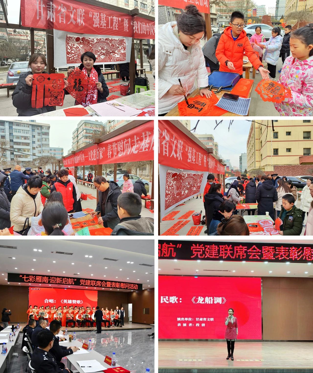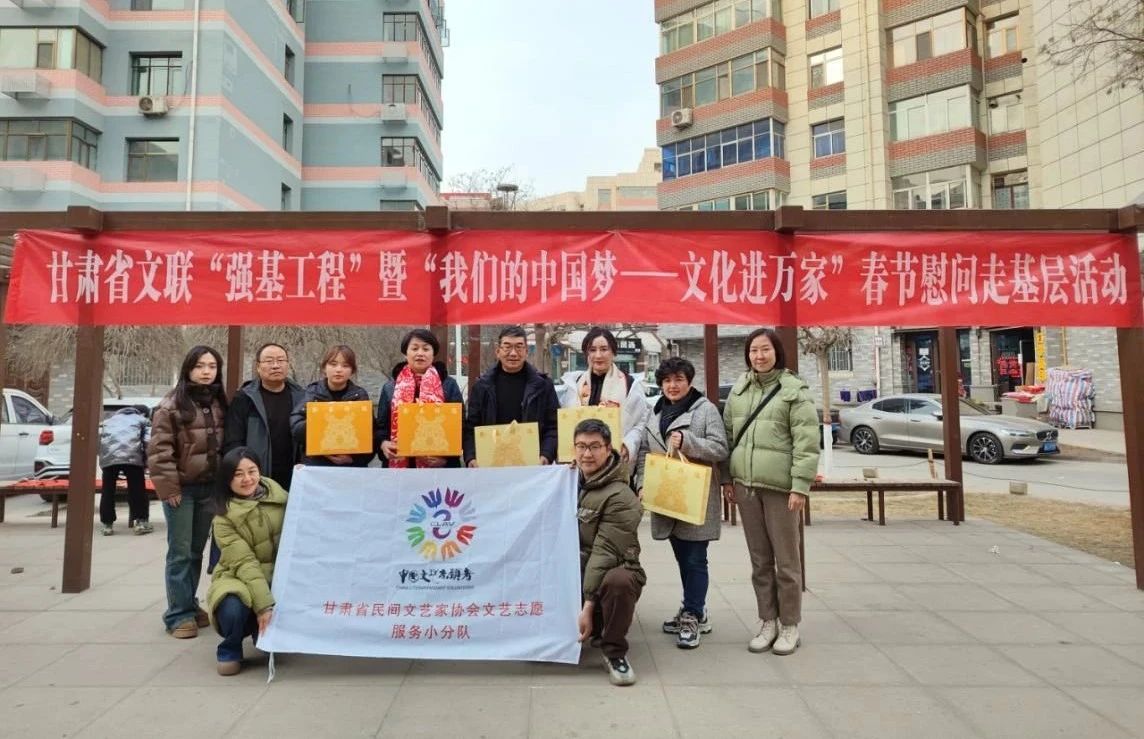 1月12日,省文联、省文明办在兰州市皋兰县水阜镇砂岗村联合举办“强基工程”暨“我们的中国梦——文化进万家”春节慰问走基层活动,现场为群众书写春联、“福”字500余幅,受到群众的热烈欢迎和一致好评;1月18日,省文联组织省书协、省民协文艺志愿服务小分队志愿者们走进兰州市城关区张苏滩社区,为社区居民写春联、送“福”字、剪窗花,一幅幅寓意幸福吉祥的作品,送去了新春的美好祝福,丰富了基层群众的精神文化生活;1月25日,省文联组织文艺志愿者在兰州市城关区雁南街道开展慰问演出,一首首耳熟能详、年味儿十足的歌曲,赢得了现场一次又一次热烈的掌声,现场为基层群众赠送春联、“福”字的环节更是将欢乐祥和、喜庆热烈的氛围推向了高潮;2月1日,在兰州市城关区农民巷东社区开展春节慰问活动,欢快的舞蹈、幽默的相声、动听的歌曲、火红的春联“福”字,展示了优秀文艺作品,弘扬了中华优秀传统文化,从不同艺术视角,激励各界群众奋进新征程、礼赞新时代。